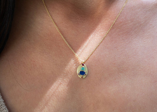 By incorporating hand-cut stones like lapis lazuli, turquoise, amethyst, and peridot, Heidi evokes the opulence of the Persian courts, while the addition of fiery red and orange sapphires, alongside deep pink rubies, brings a modern vibrancy to the collection. The mix of rich, matte stones with the brilliance of faceted gemstones creates a striking contrast, showcasing the beauty of the raw materials.